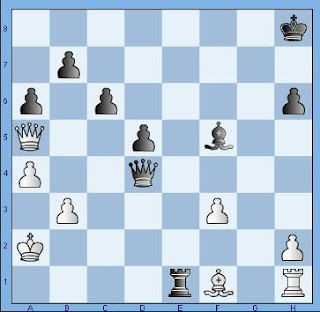 Siin on musta käik ja laual on matt 6 käiguga. 1. ...Ob1+ 2. Kb1: Ld1+ 3. Ka2 Lb3:+ 4. Ka1 Ld1+ 5. Ka2 Lc2+ 6. Ka1 Va3 matt. Malakhovil oli aega umbes 50 sekundit, aga täiesti ootamatult pani ta hoopis vankri ühe käiguga ette.